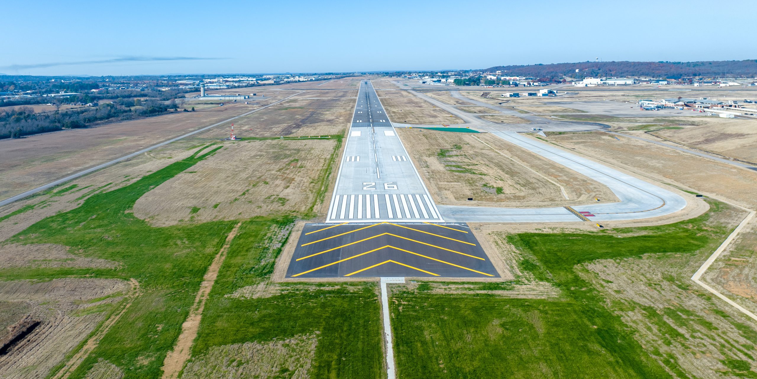 Fort Smith Regional Airport (Ebbing Field) was notified in June 2021 that it was a finalist for the Foreign Military Sales Program (FMS) Pilot Training Center, which includes F-16 and F-35 training missions for foreign countries. The City of Fort Smith reached out to the project team to evaluate construction of a 1,301-ft extension to the current 8,017-ft Runway 8-26, needed for operational startup by fall 2023. The team developed a detailed schedule to track individual progress for key project elements among many notable stakeholders. These efforts fast-tracked it to completion in just over two years, with final project delivery by September 2023. The project team consisted of Halff, Garver, McClelland Consulting Engineers, Harris Miller Miller & Hanson, and NV5 Geospatial.