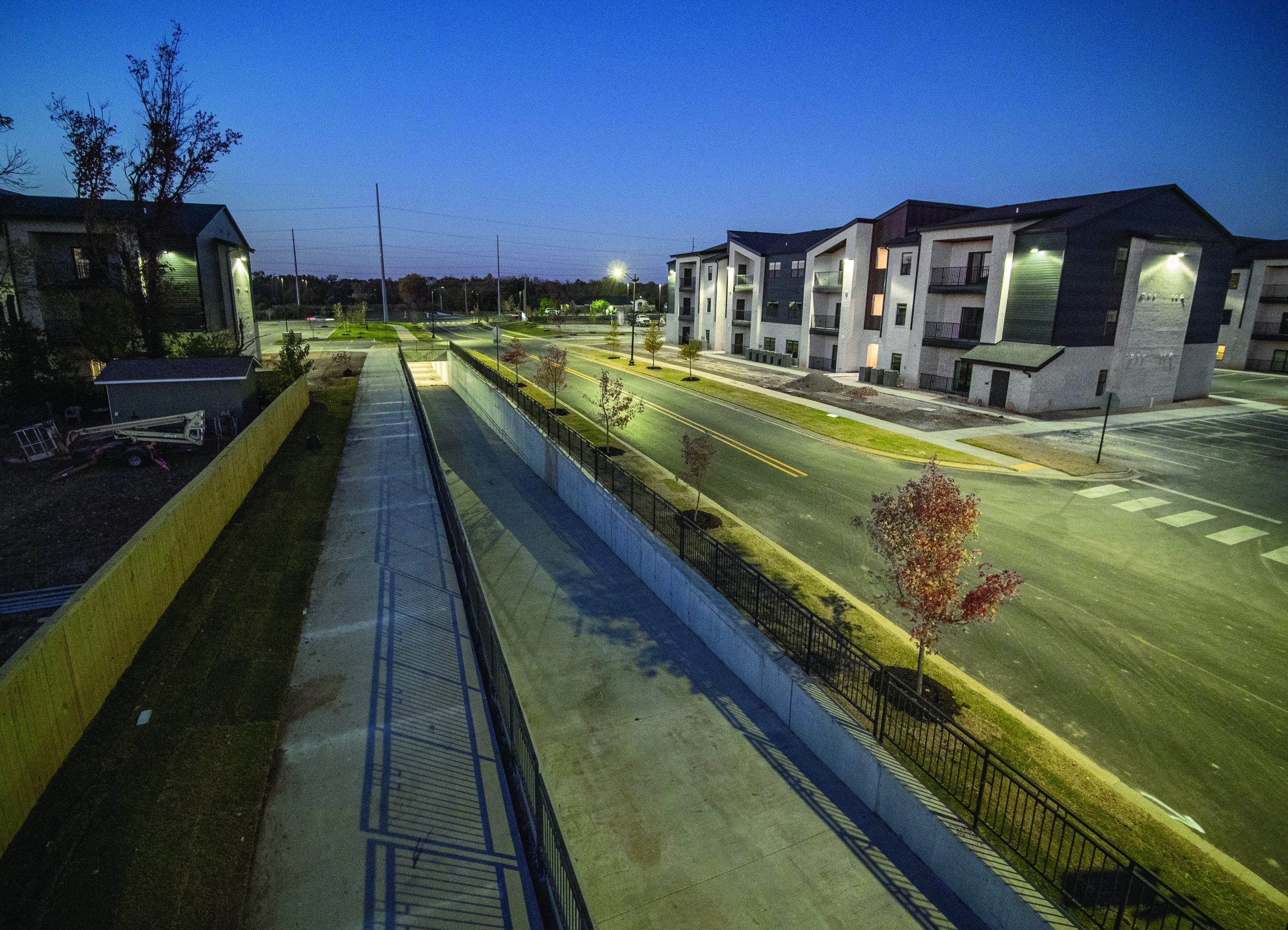 According to the Arkansas Department of Transportation (ARDOT), daily traffic on Highway 102 (14th Street) in Bentonville has surged by 200% since 1990, raising safety concerns for pedestrians and cyclists. The Highway 102 Pedestrian Tunnel was developed to address these issues, providing a vital link to enhance safety and connectivity. Halff led the design, in partnership with the City of Bentonville and the Trailblazers. The project involved comprehensive efforts, including site layout, grading, erosion control, structural components and the installation of a stormwater lift station to ensure safe conditions during heavy rainfall. Effective coordination with stakeholders and value engineering helped reduce disruptions, utility relocations and costs. Overcoming challenges such as existing utilities, bedrock and overhead power lines, the project utilized precast concrete boxes and were poured-in-place for precision and efficiency. Now recently opened, the tunnel promotes safer, alternative transportation options and supports Bentonville’s vision of a sustainable, connected and livable community.